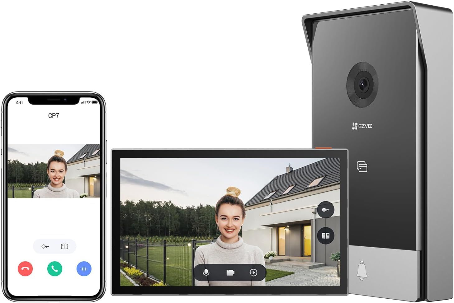 EZVIZ CP7 2K Visiophone Connecté Interphone Vidéo, 7 Pouces Moniteur Tactile, Unlock à Distance, 2 Fils, Detection Humaine, Option RFID, Audio Bidirectionnel, Vision Nocturne, étanche, WiFi bi-Bande