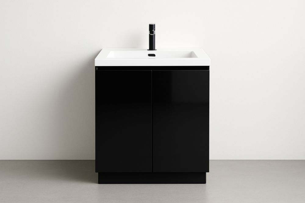 Meuble sous-vasque noir en MDF avec lavabo en céramique 60x45x85 cm
